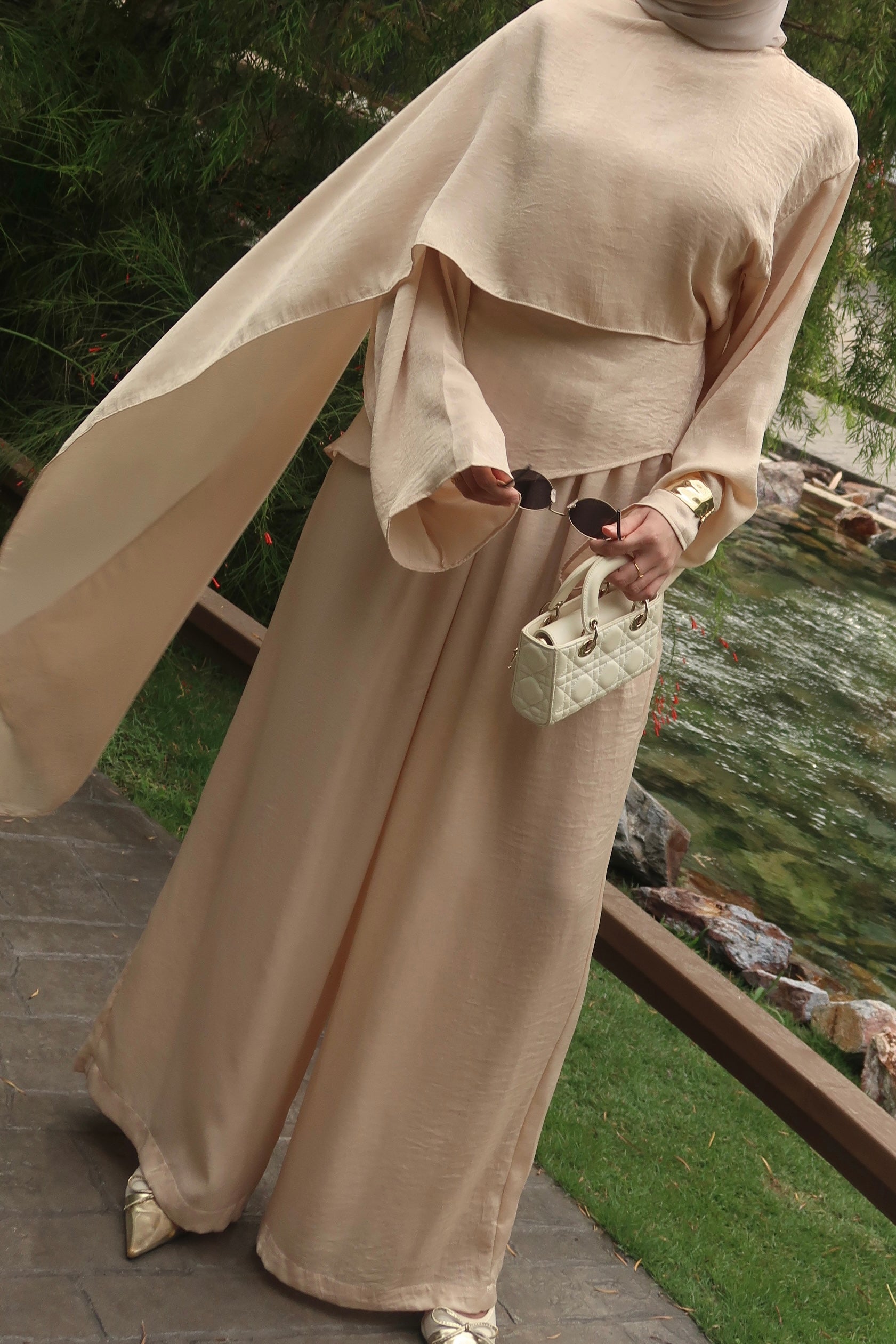 • 2-piece set: Cape blouse + wide-leg pants